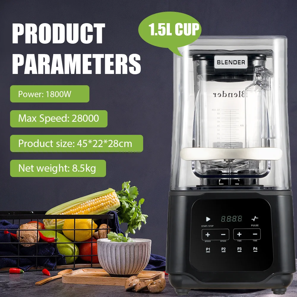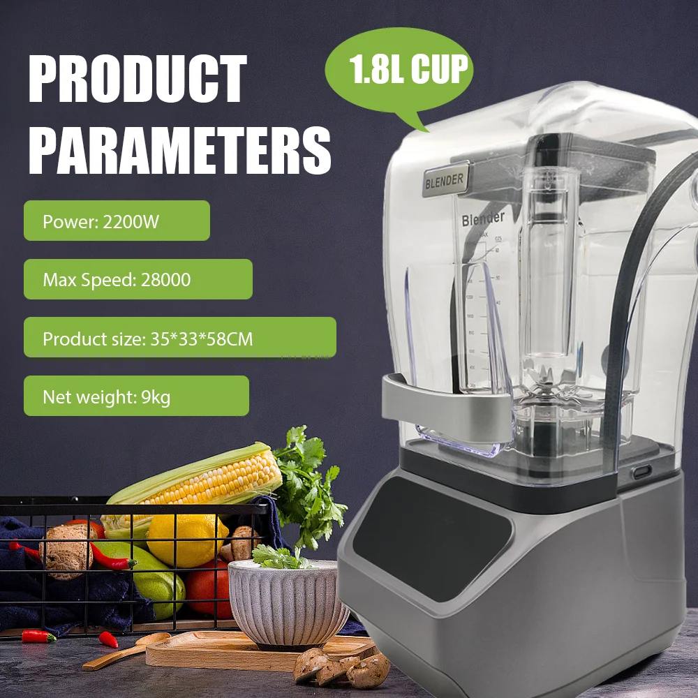 Hvis du leter etter løsninger og produsenter av kommersielle blenders, vennligst kontakt oss! Motor Effekt (W) 1800w Spenningsområde (V) 220~240V Hastighet (Rpm) 28000 Varens mål 38*30*58cm Motortype 100% ren kobber AC-motor Ja...