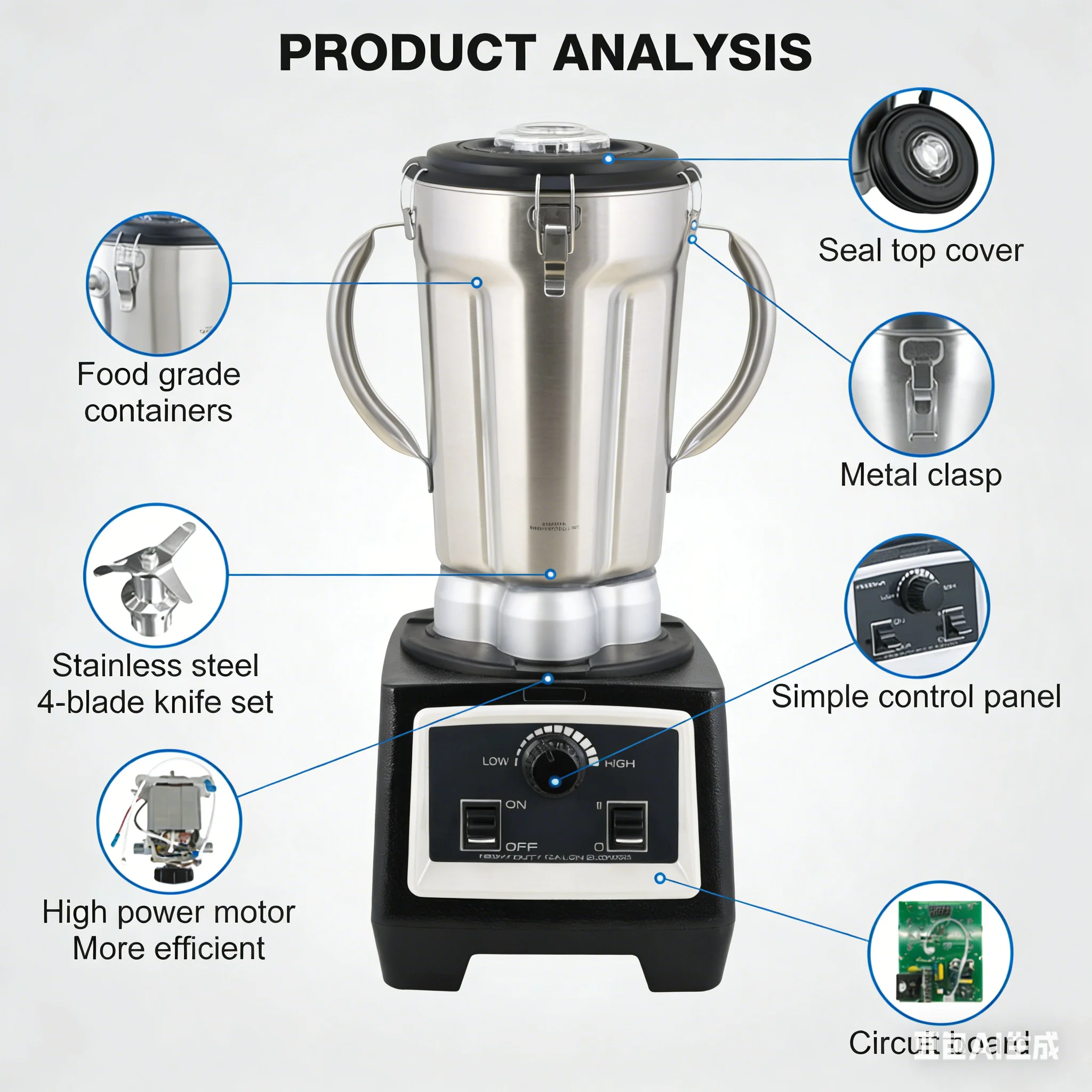 Dacă sunteți în căutarea unor soluții și producători de blenderuri comerciale, contactați-ne! Puterea motorului (W) 2300w Tensiune (V) 220~240V Viteză (Rpm) 28000 Dimensiuni articol 30*37*58cm Tip motor Motor AC din cupru pur 1...