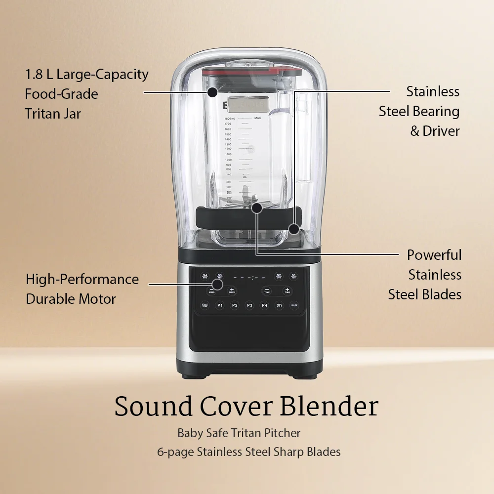 Название продукта: Профессиональный вакуумный блендер, Напряжение: 110~120 В / 220~240 В, Мощность двигателя: 1800 Вт, Скорость двигателя: 28000 об/мин, Материал двигателя: двигатель переменного тока из 100% чистой меди, Матери...